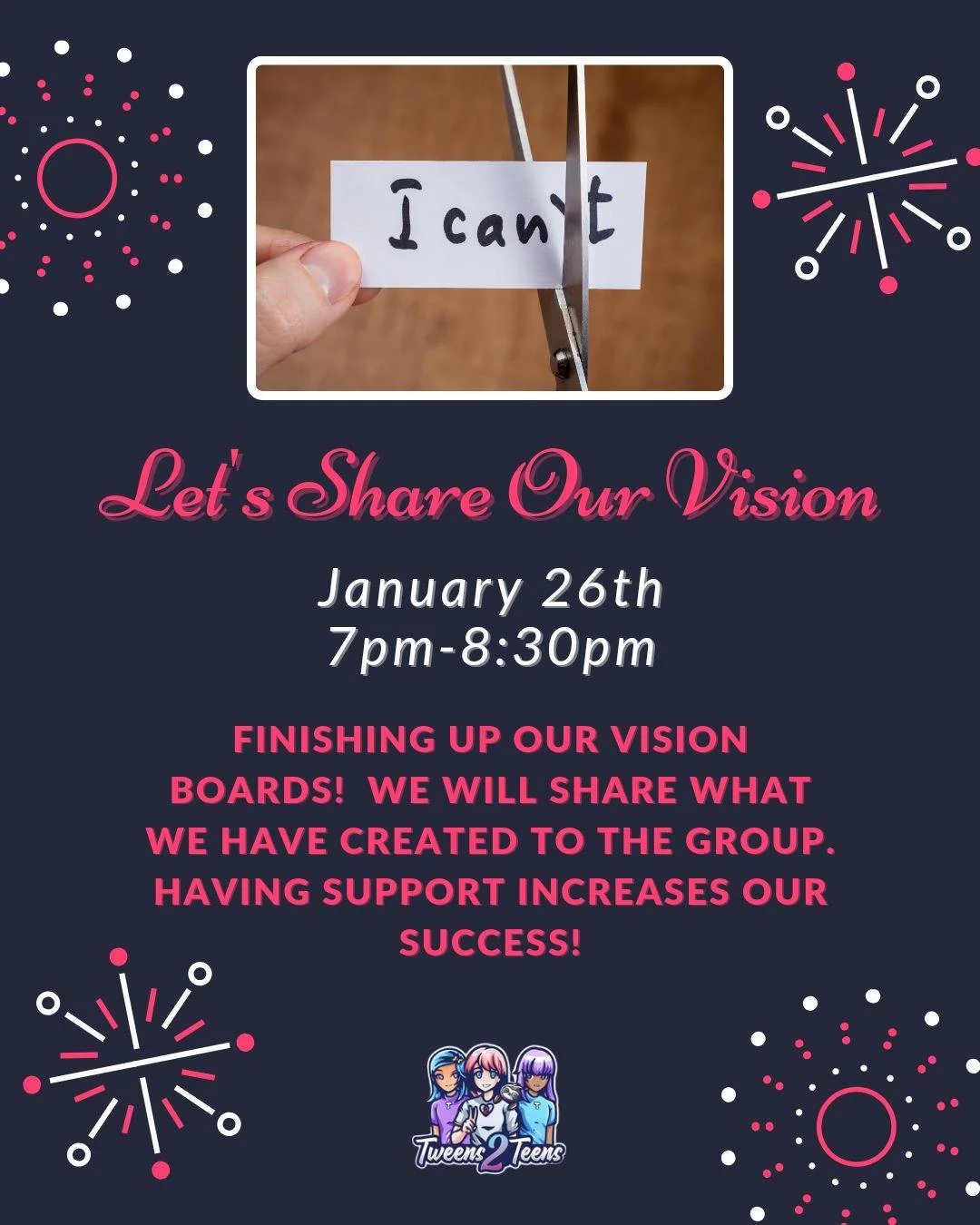 Let’s Share Our Vision Friday, January 26, 2024 7:00 PM 8:30 PM Tweens 2 Teens 1125 South Rock Road Wichita, KS, 67207 United States (map) Google Calendar ICS